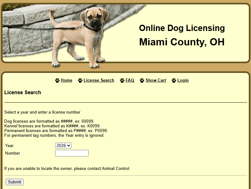 If someone finds a lost dog in Miami County, they should first check the online dog license lookup to see if the pet is registered. If that doesn’t provide results, contacting the shelter or dispatch ensures the animal receives care quickly.